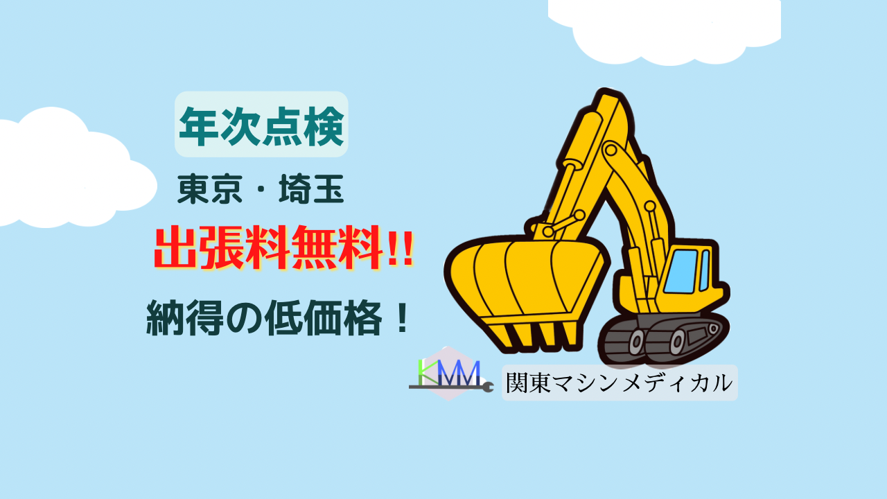 重機 建設機械 バックホーの年次点検 特定自主検査 低価格で承っております。さらに東京 埼玉は出張料無料です。もちろん千葉県、神奈川県でも低価格です!メンテナンスなしの検査のみも承っております。